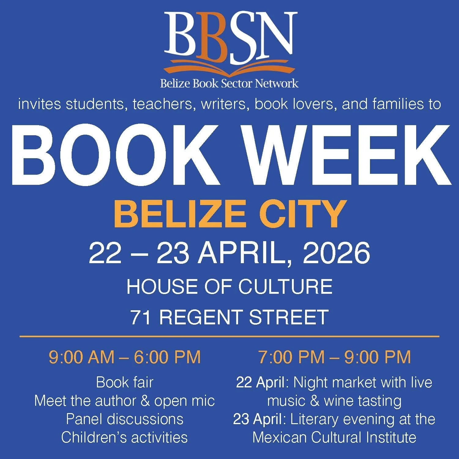 I’m looking forward to taking part in this year’s Book Week book fair at the House of Culture in Belize City.